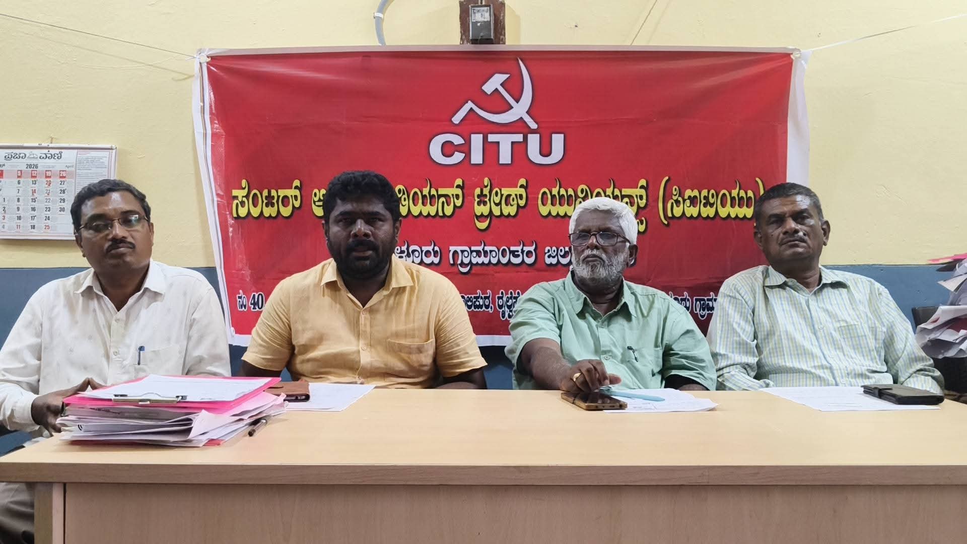 ಪತ್ರಿಕಾಗೋಷ್ಠಿಯಲ್ಲಿ ಸಿಐಟಿಯು ಜಿಲ್ಲಾ ಪ್ರಧಾನ ಕಾರ್ಯದರ್ಶಿ ಪಿ.ಎ.ವೆಂಕಟೇಶ್, ಗ್ರಾಮ ಪಂಚಾಯತಿ ನೌಕರರ ಸಂಘದ ರಾಜ್ಯ ಮುಖಂಡ ಶ್ರೀನಿವಾಸ್, ಜಿಲ್ಲಾಧ್ಯಕ್ಷ ಟಿ.ಎಂ.ನಟರಾಜು ಉಪಸ್ಥಿತರಿದ್ದರು.